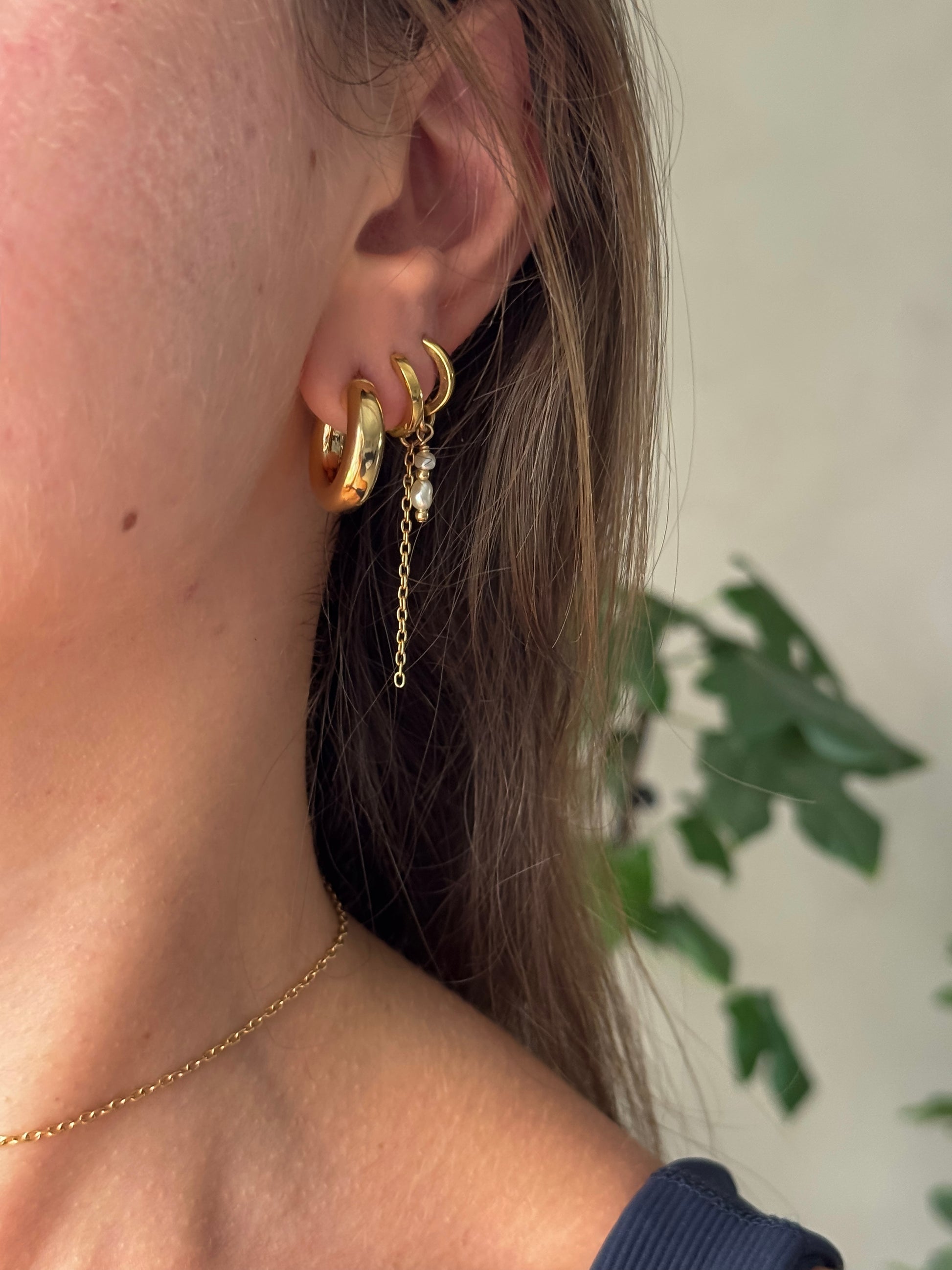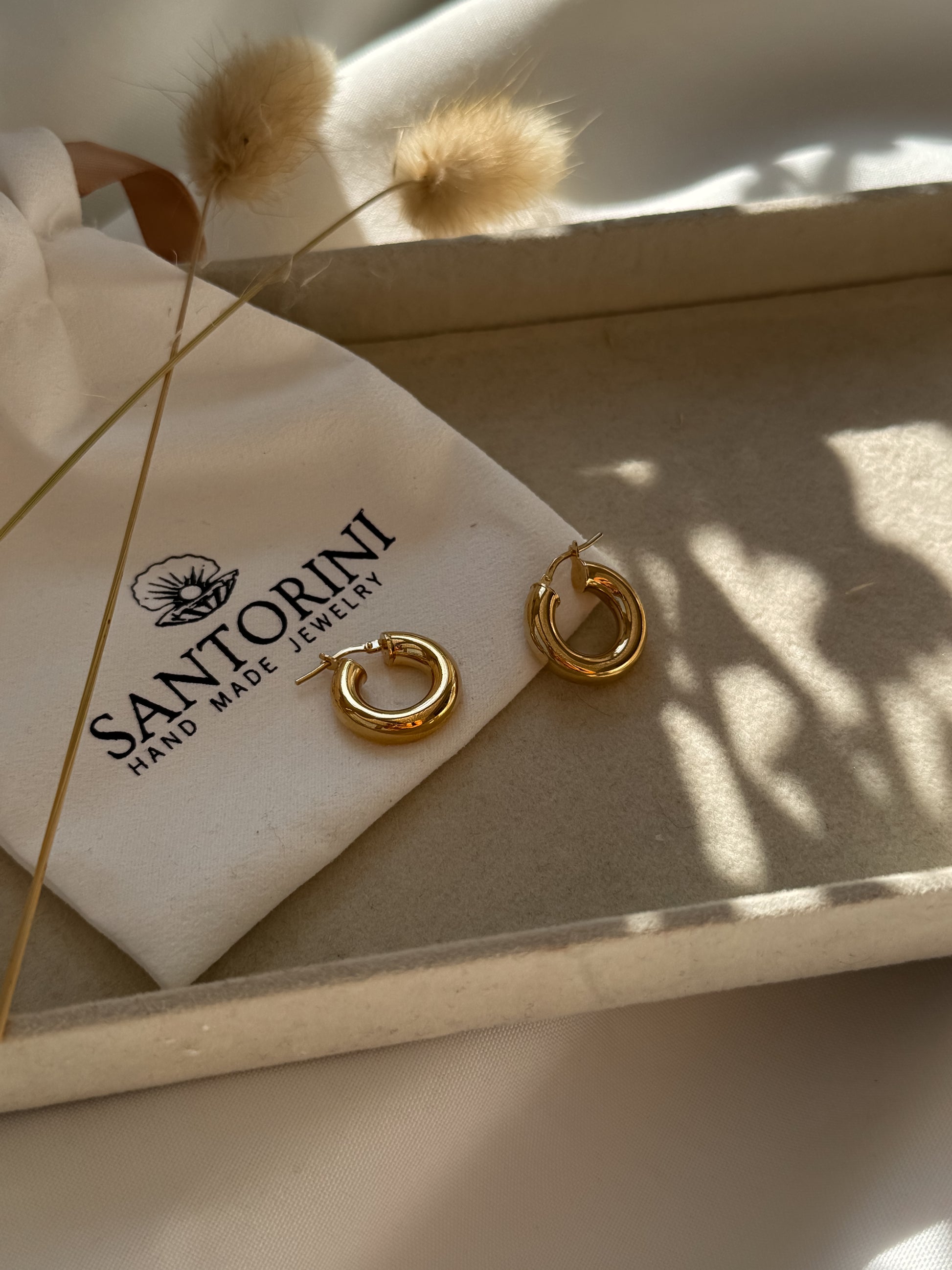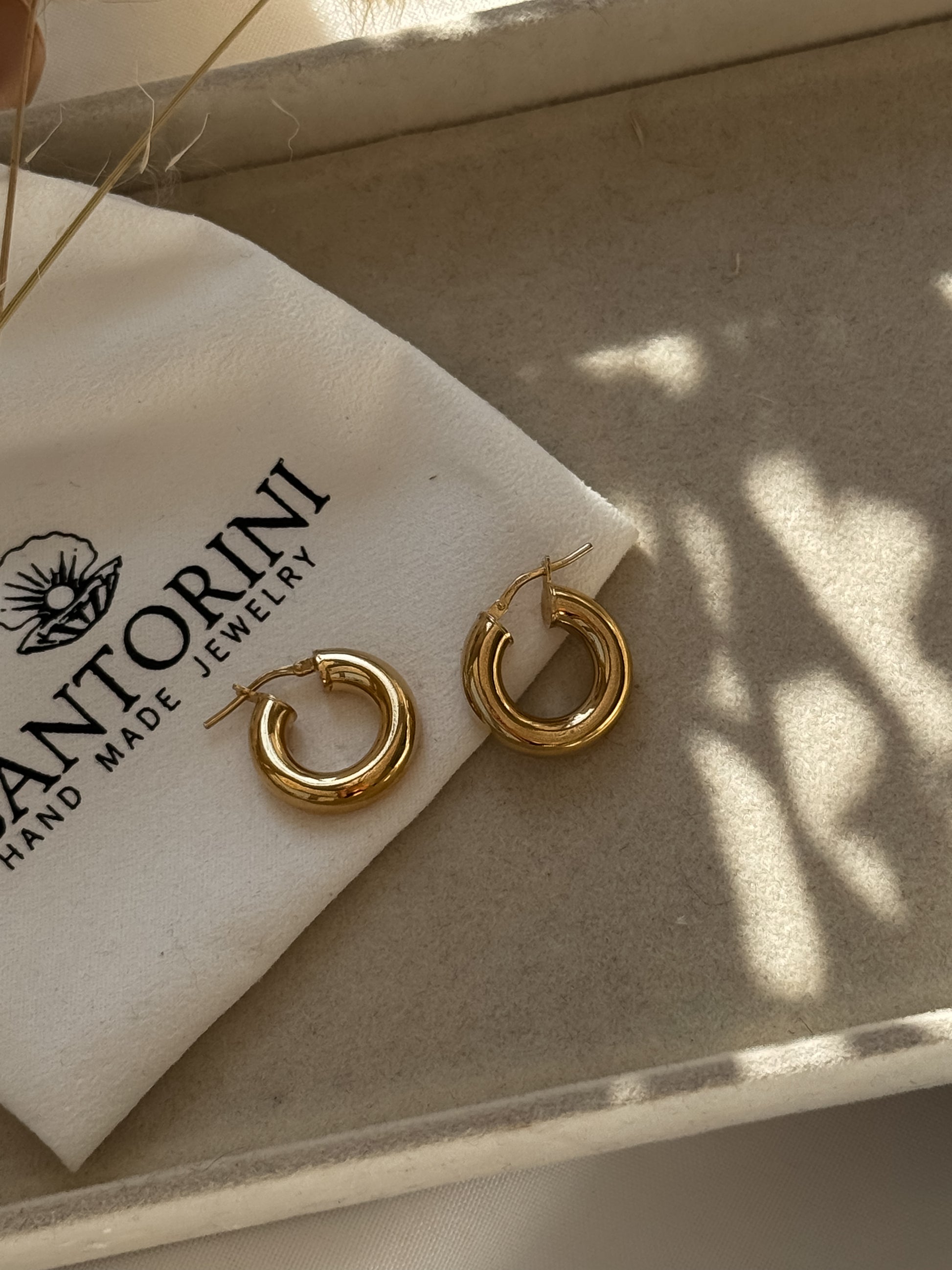עגילי חישוק צ׳אנקים עשויים כסף מצופה זהב 14K