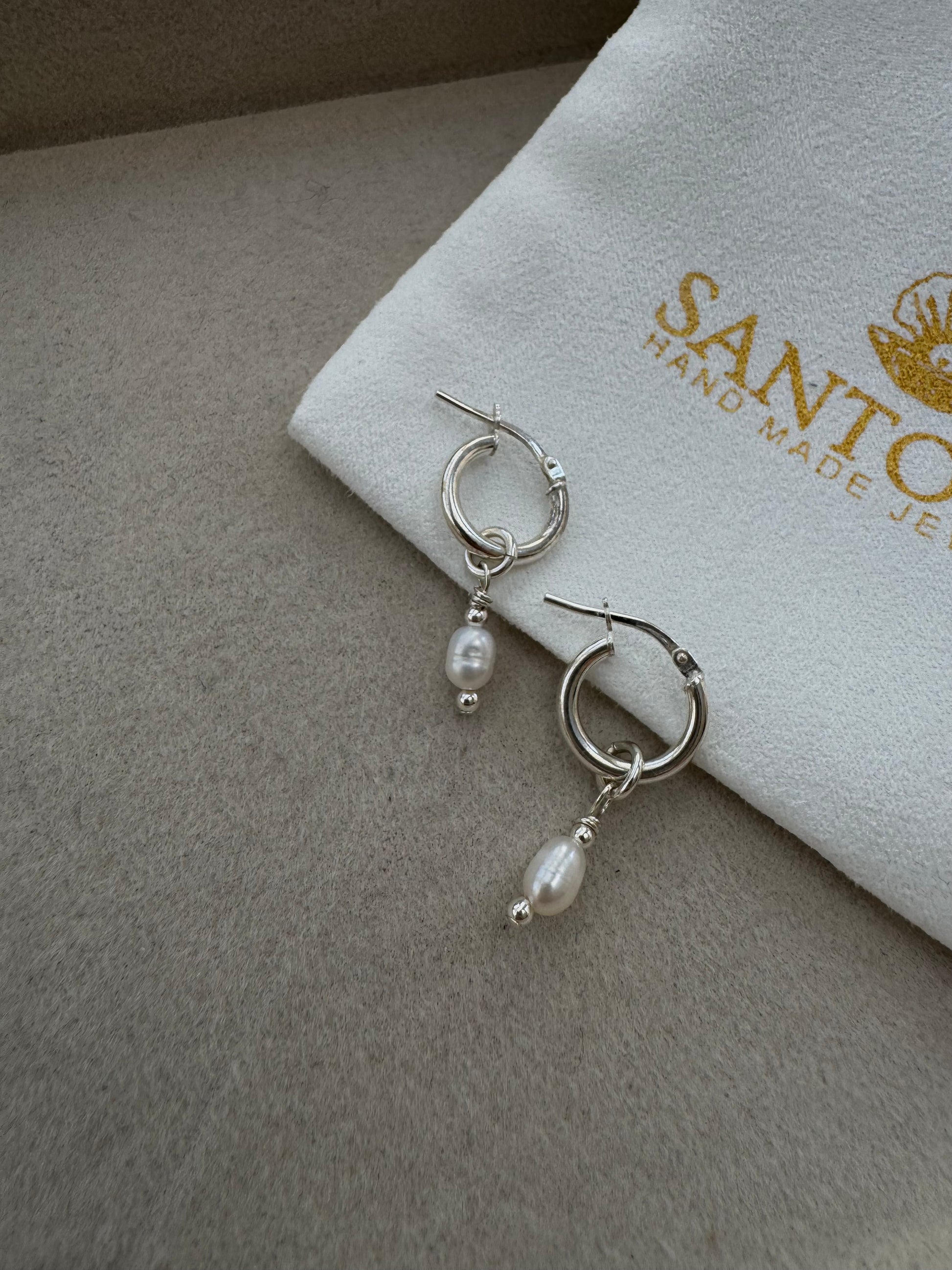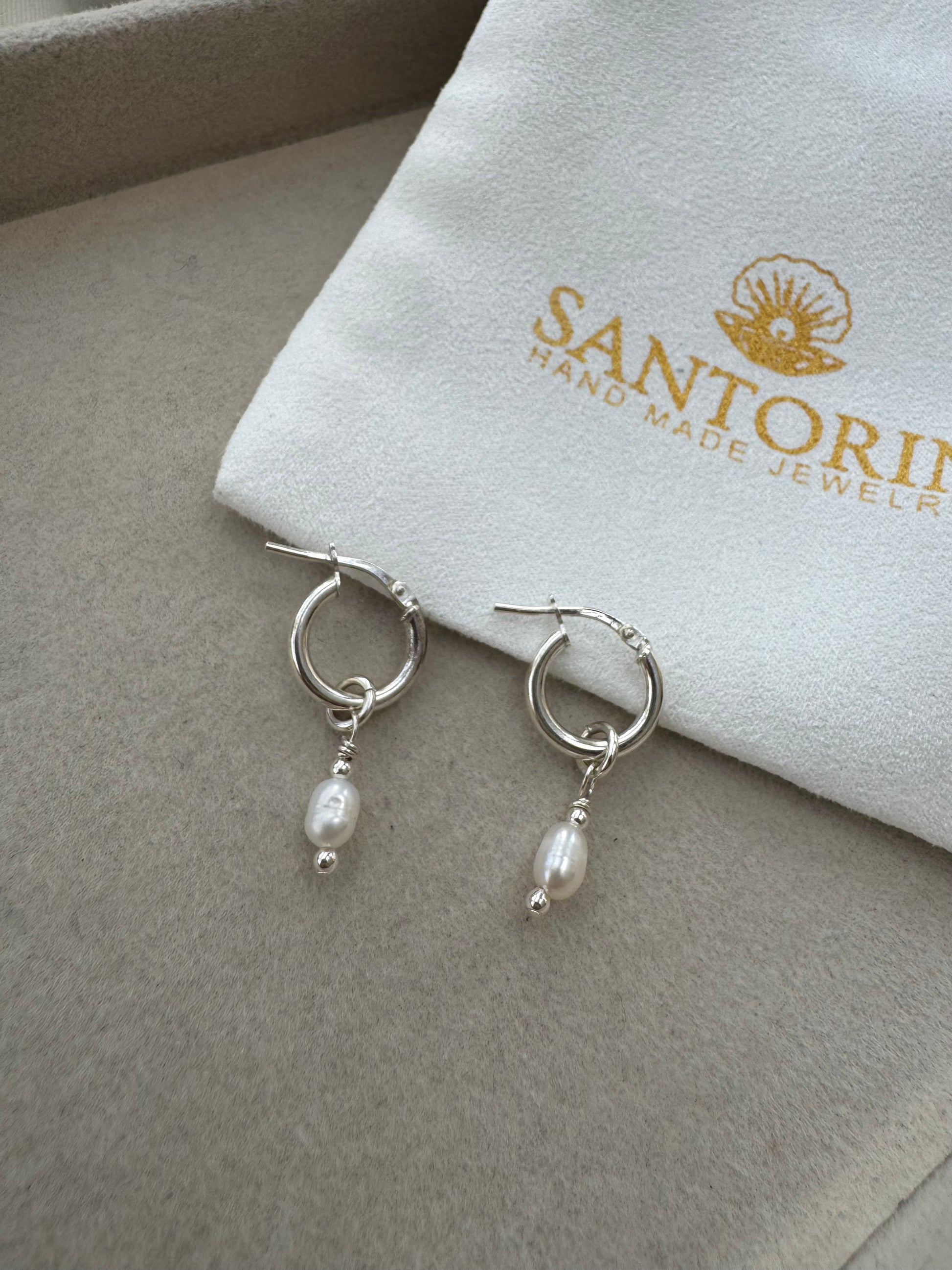 עגילי חישוק כסף 925 בשילוב פנינה קטנה
