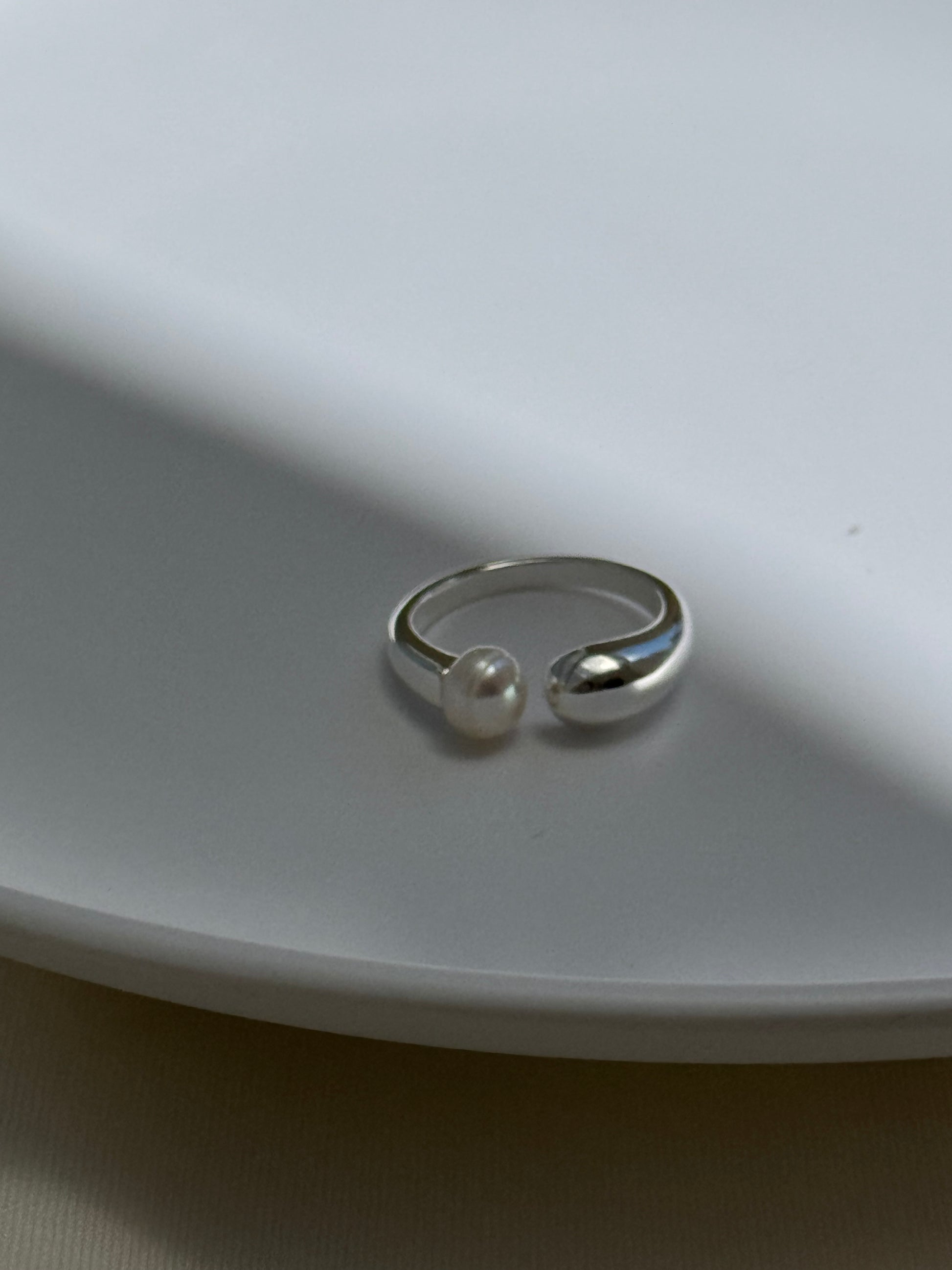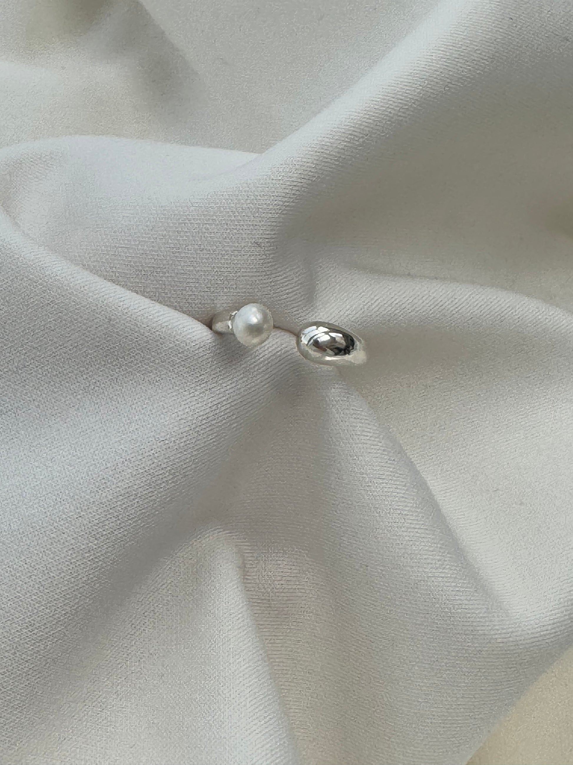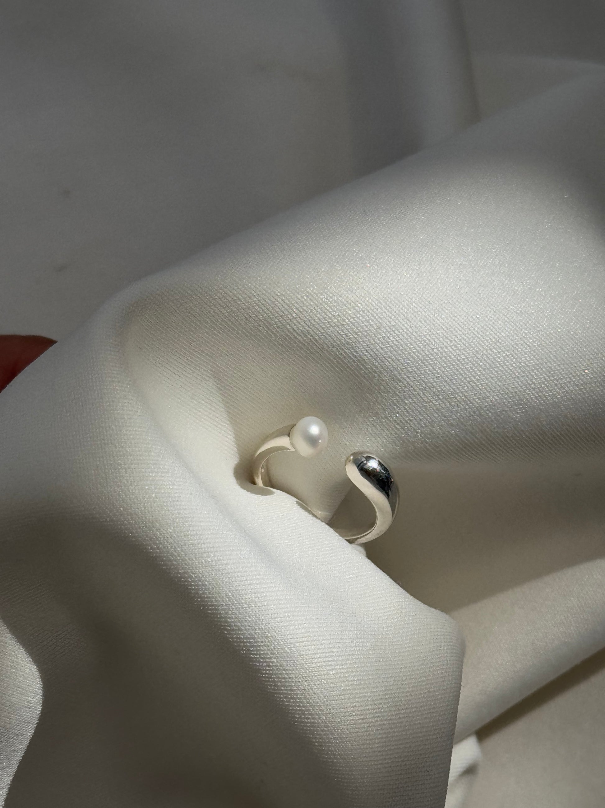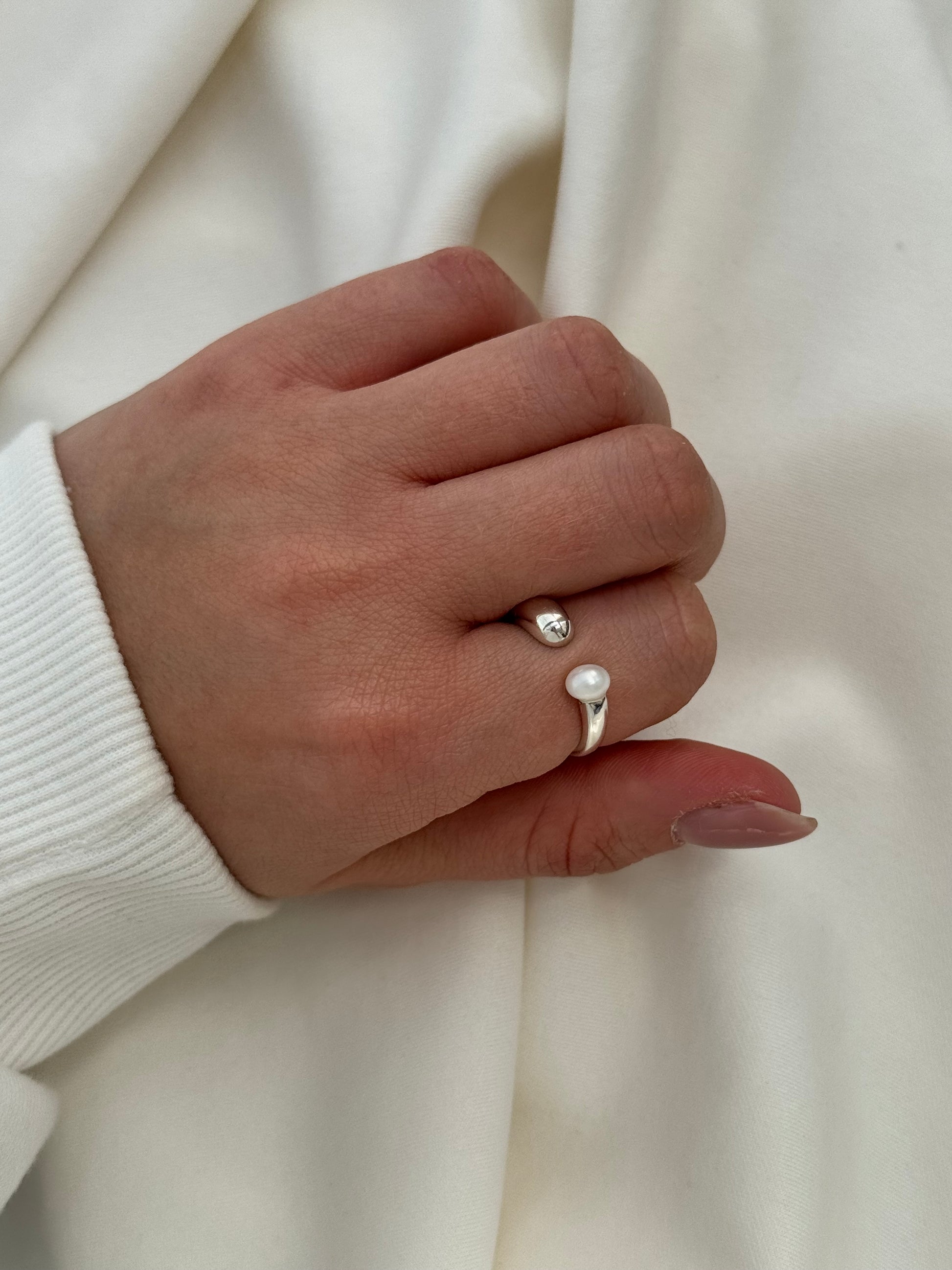 טבעת פתוחה מכסף 925 בעיצוב נקי, בשילוב פנינה מתורבתת לקבלת מראה אלגנטי וקלאסי עם טאץ’ מודרני על זמני