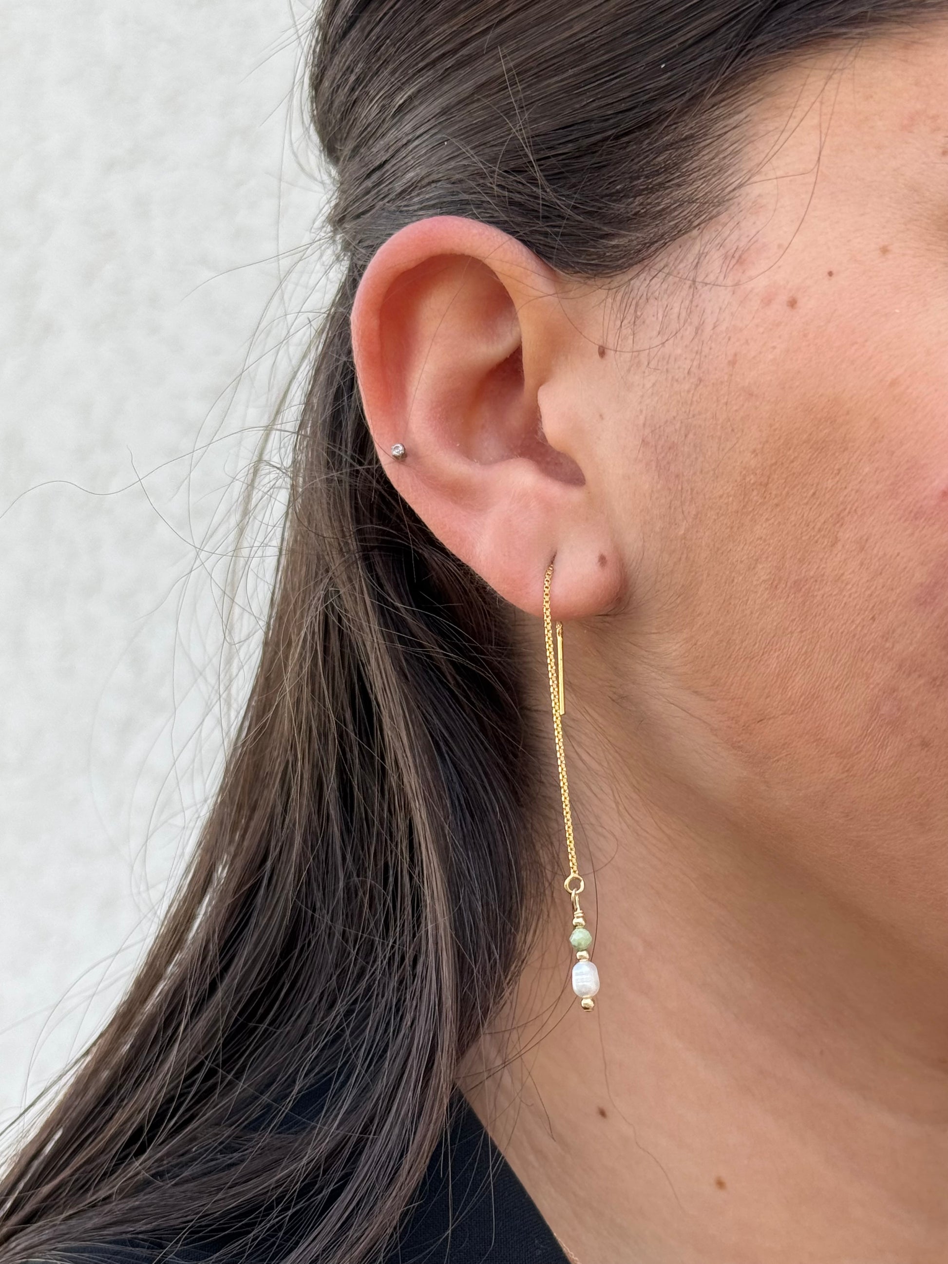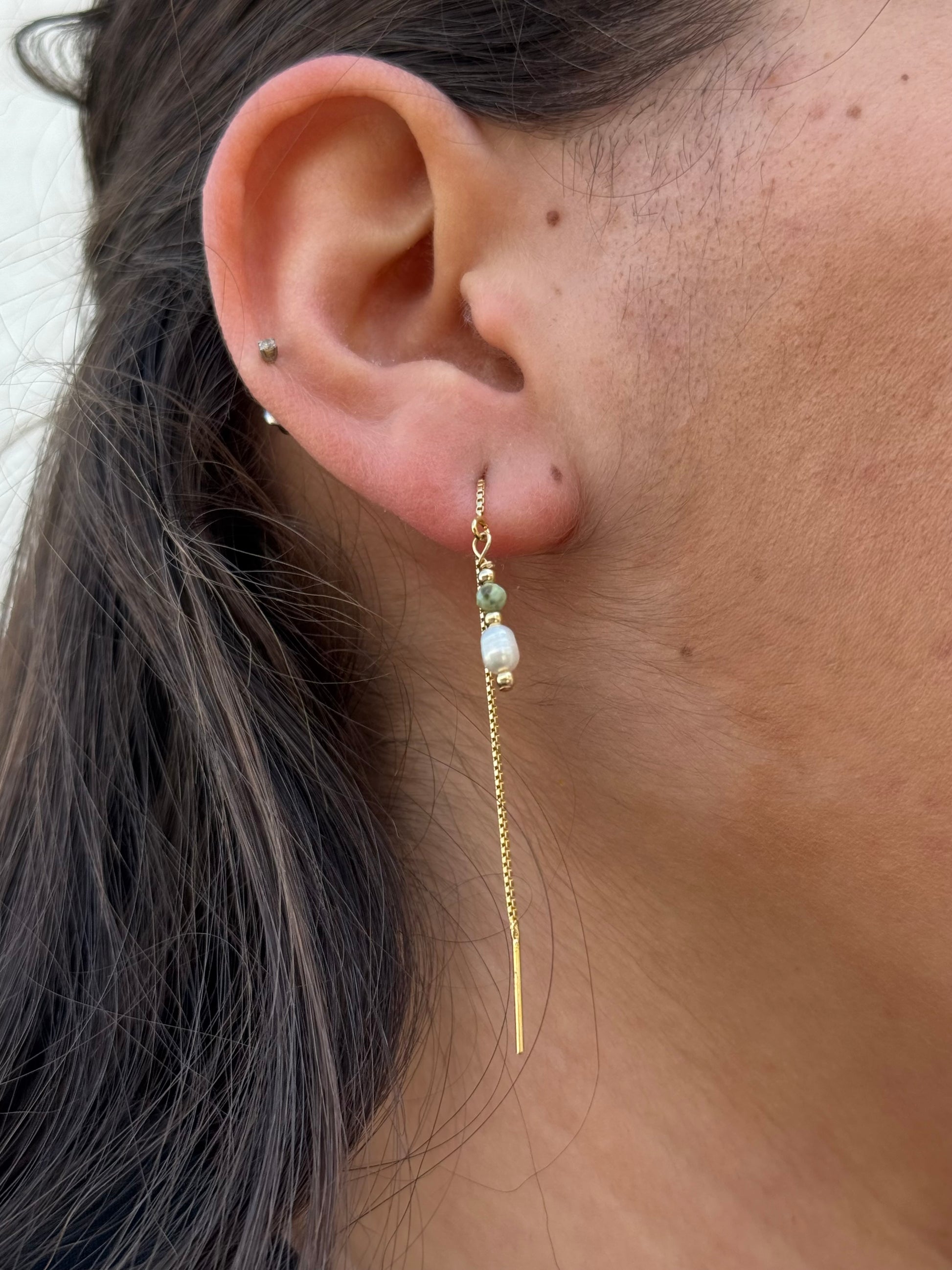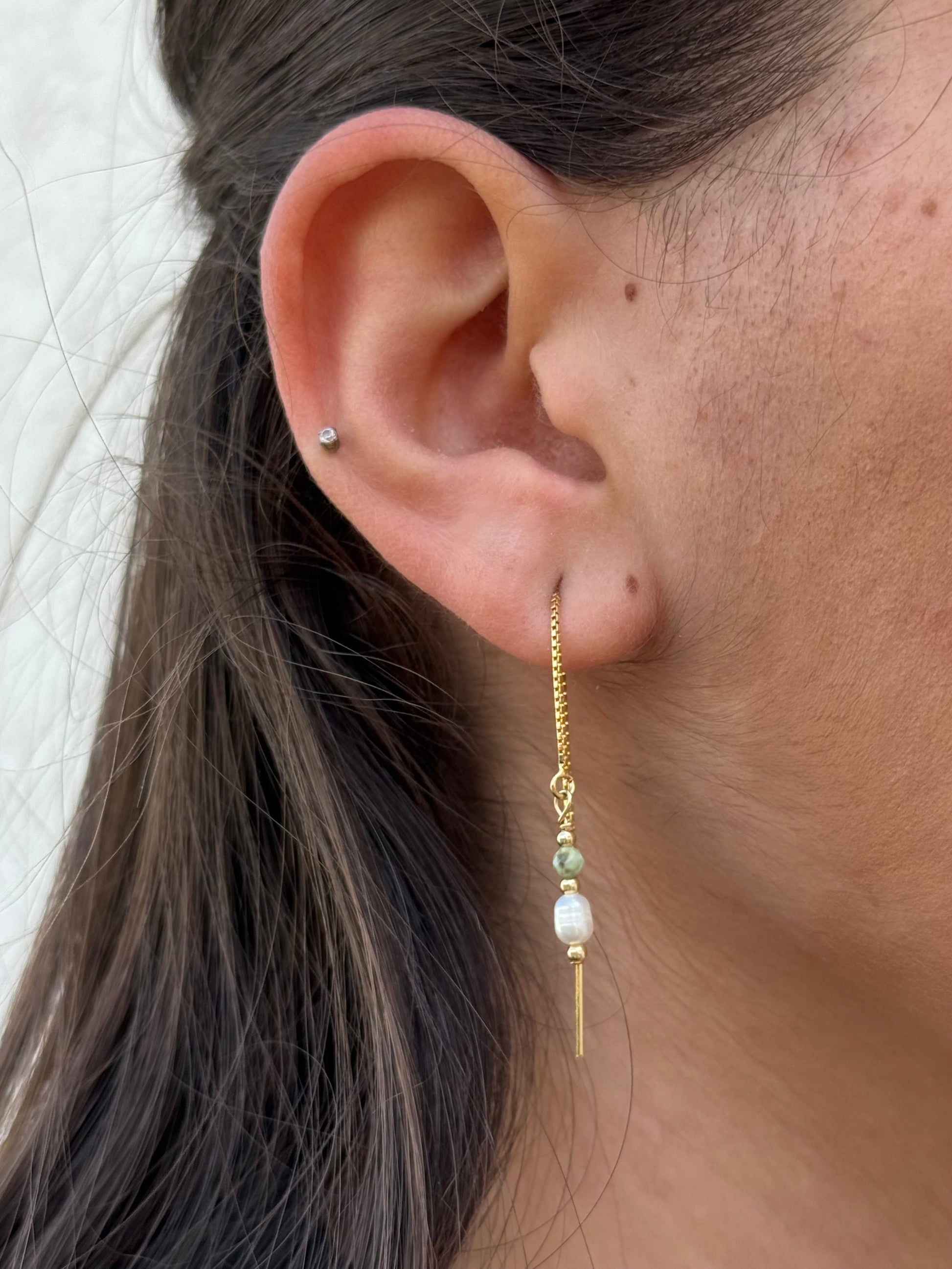 עגילי ״שרוך״ יפייפים בשילוב פנינה ואבן טורקיז אפריקאי