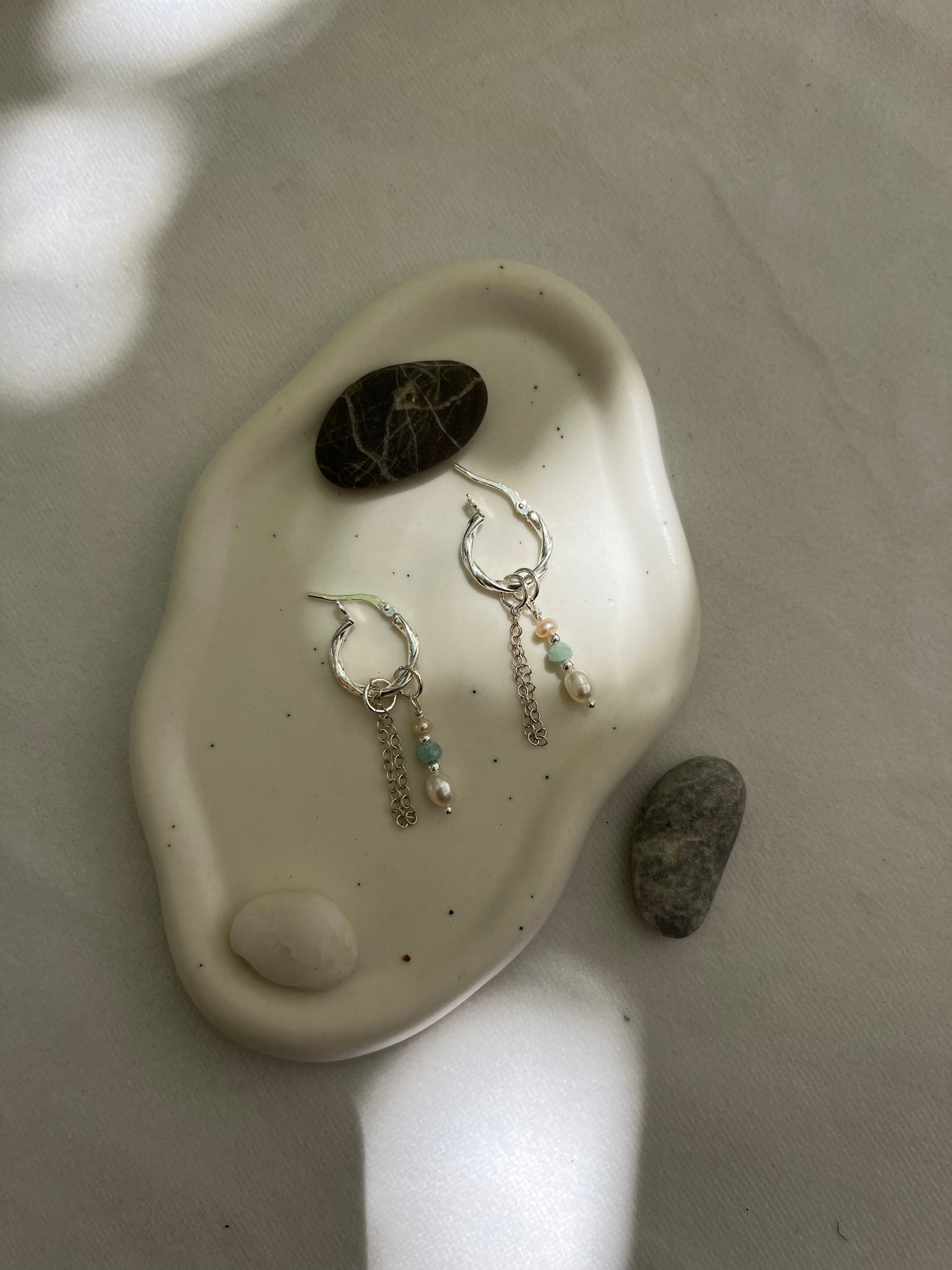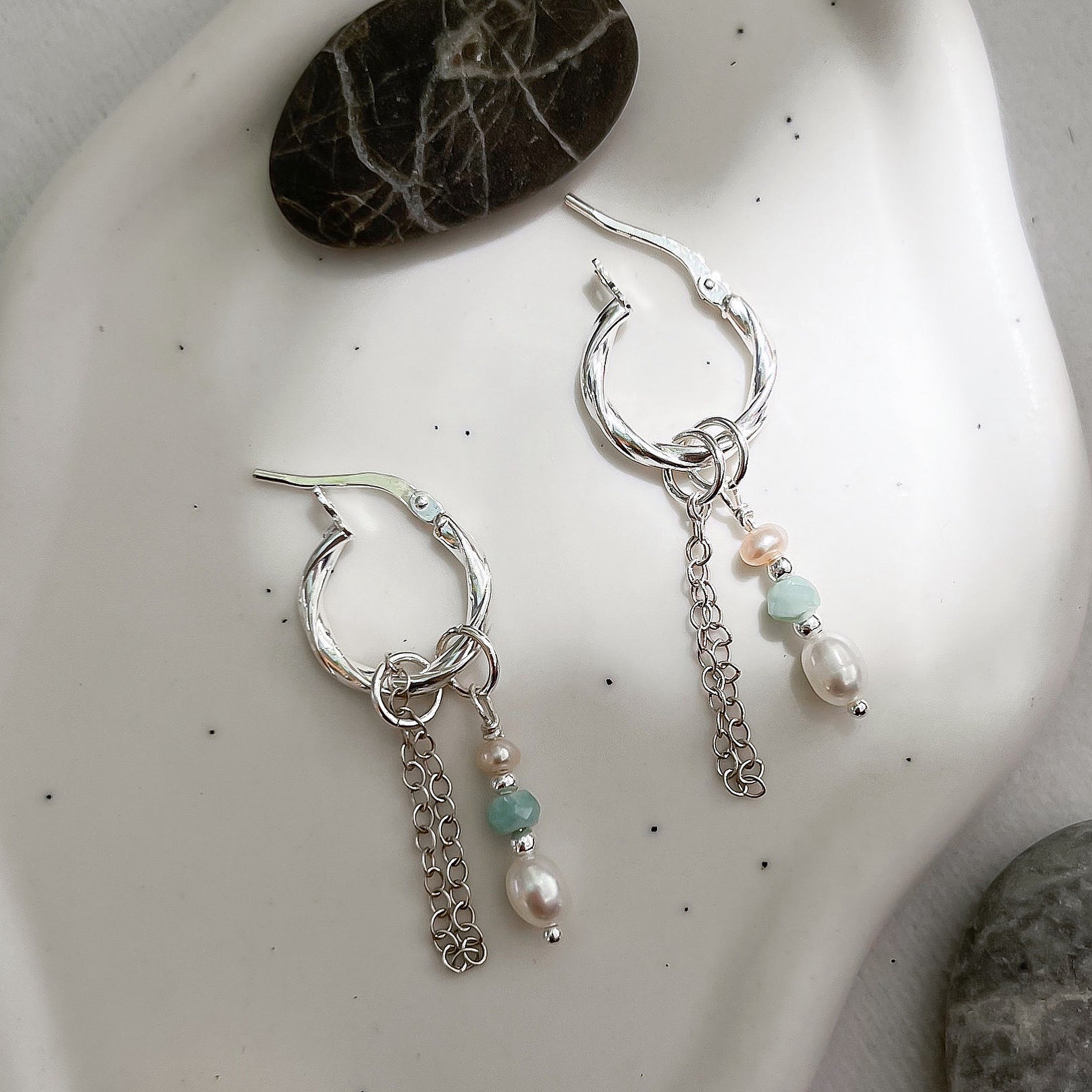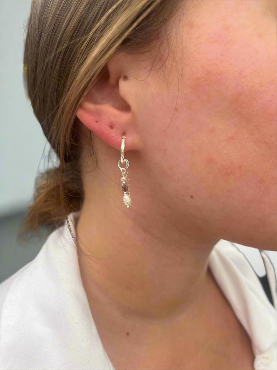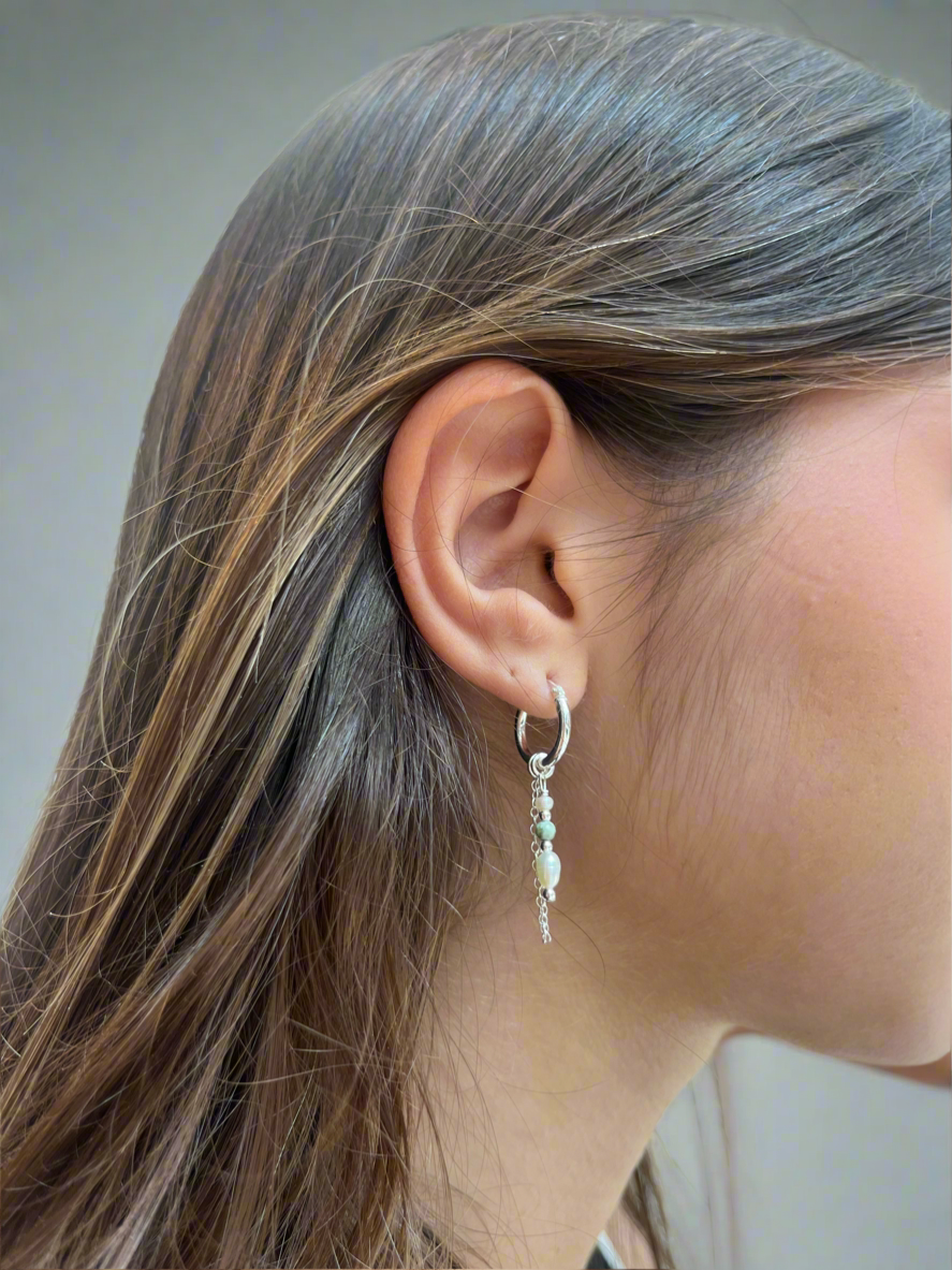 העגיל עשוי כסף 925 אמיתי , אבני חן ופנינים מתורבתות
