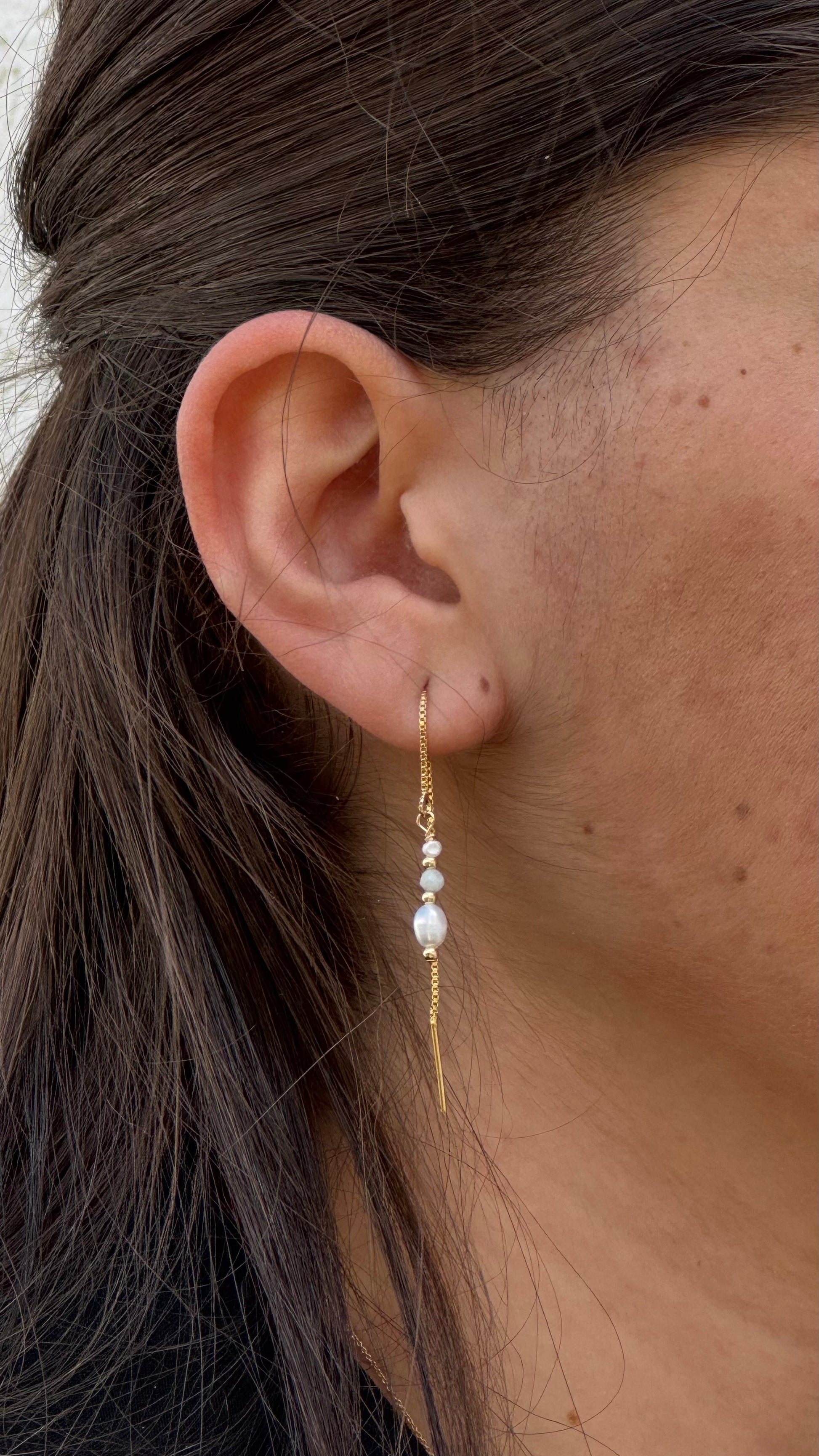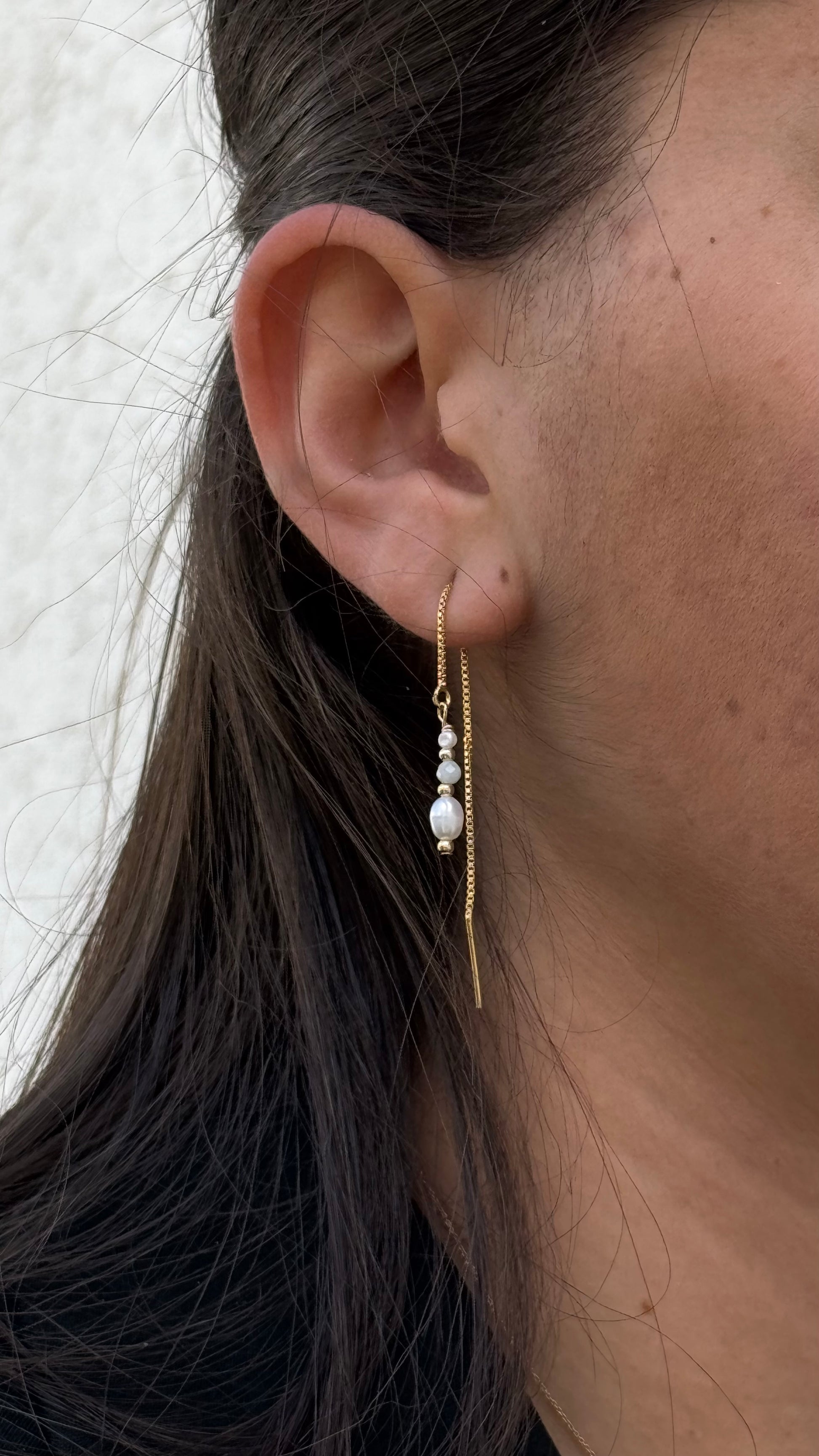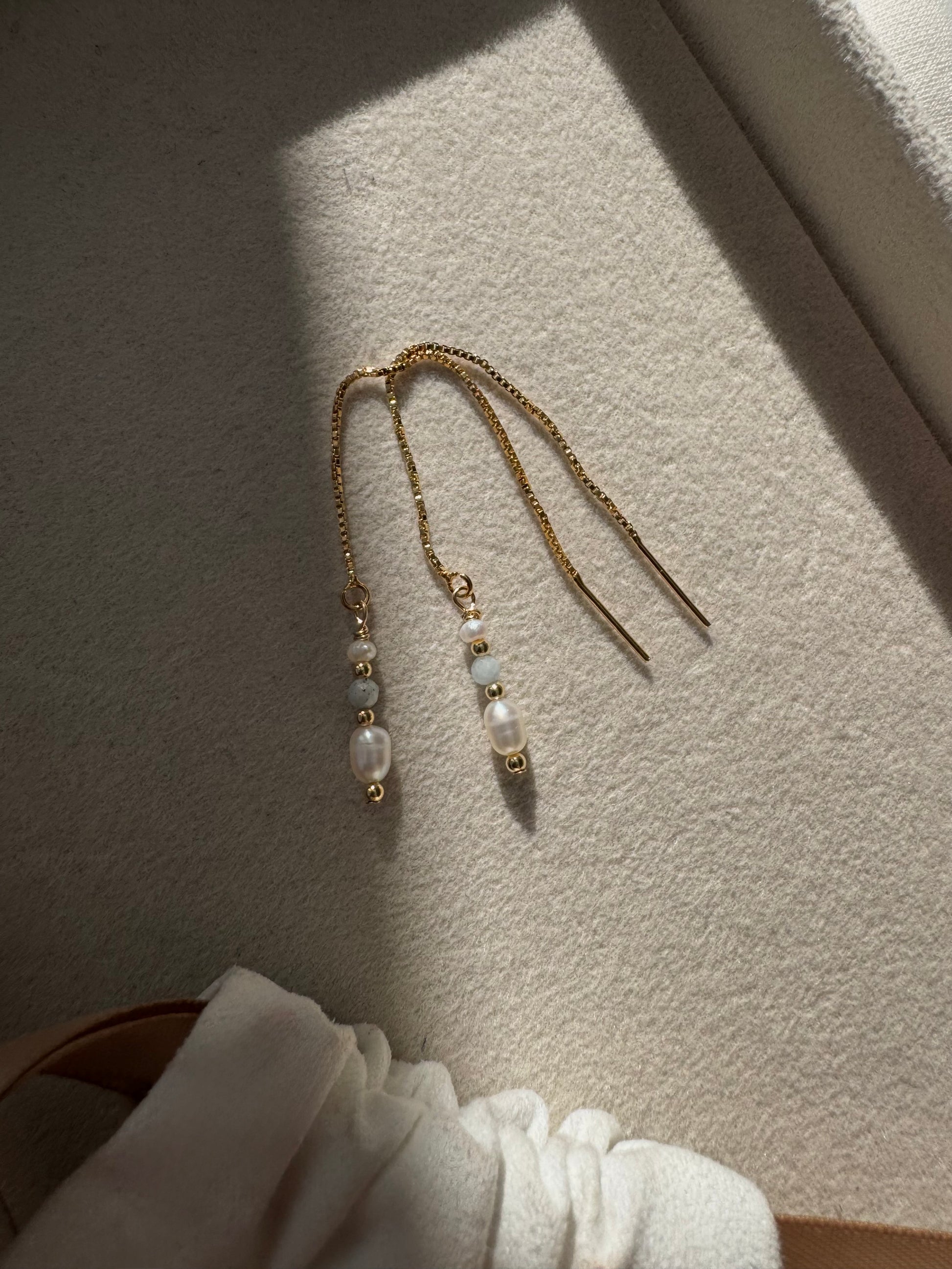 עגילי ״שרוך״ יפייפים בשילוב פנינה ואבן חן אקוומרין
