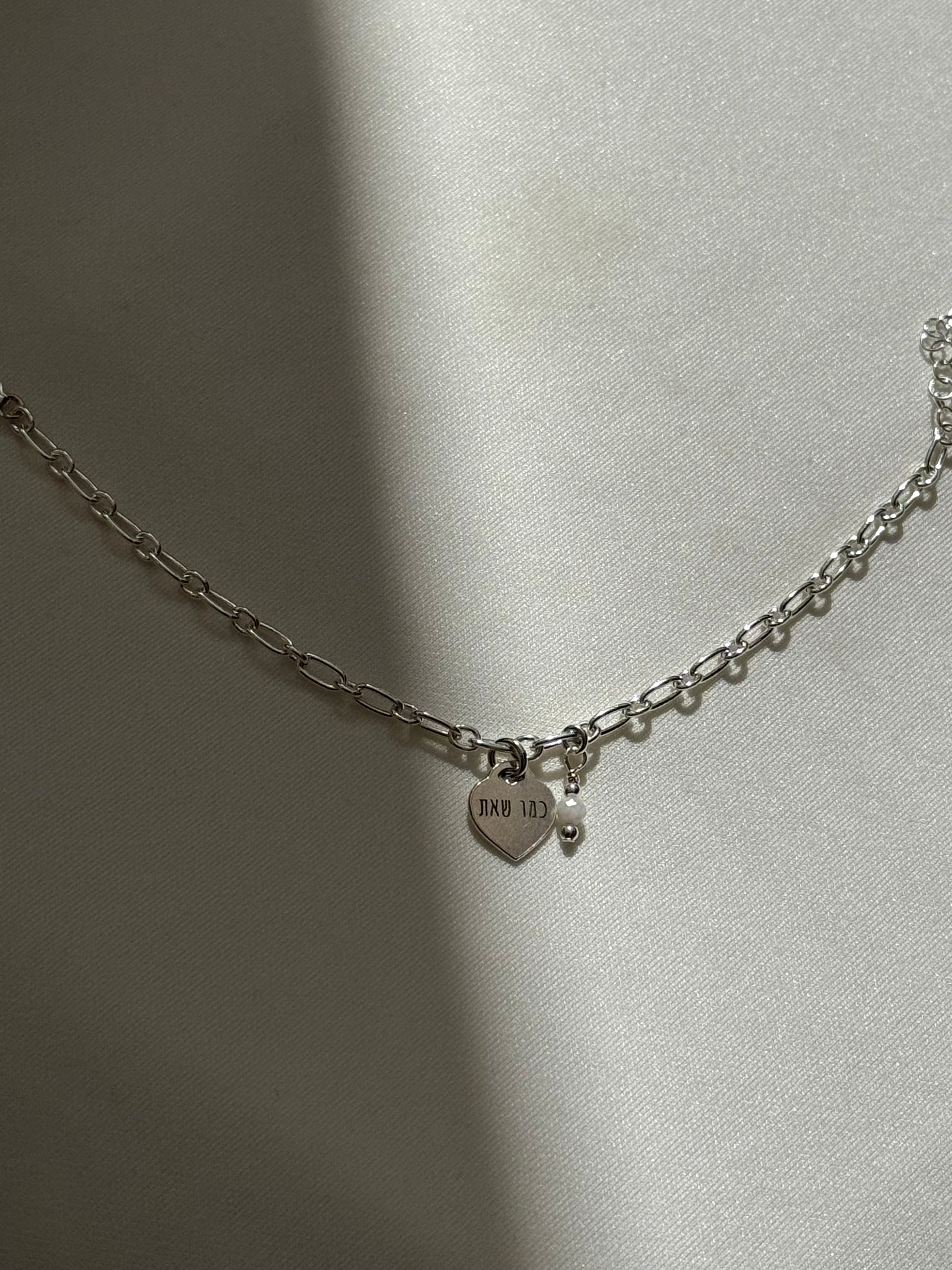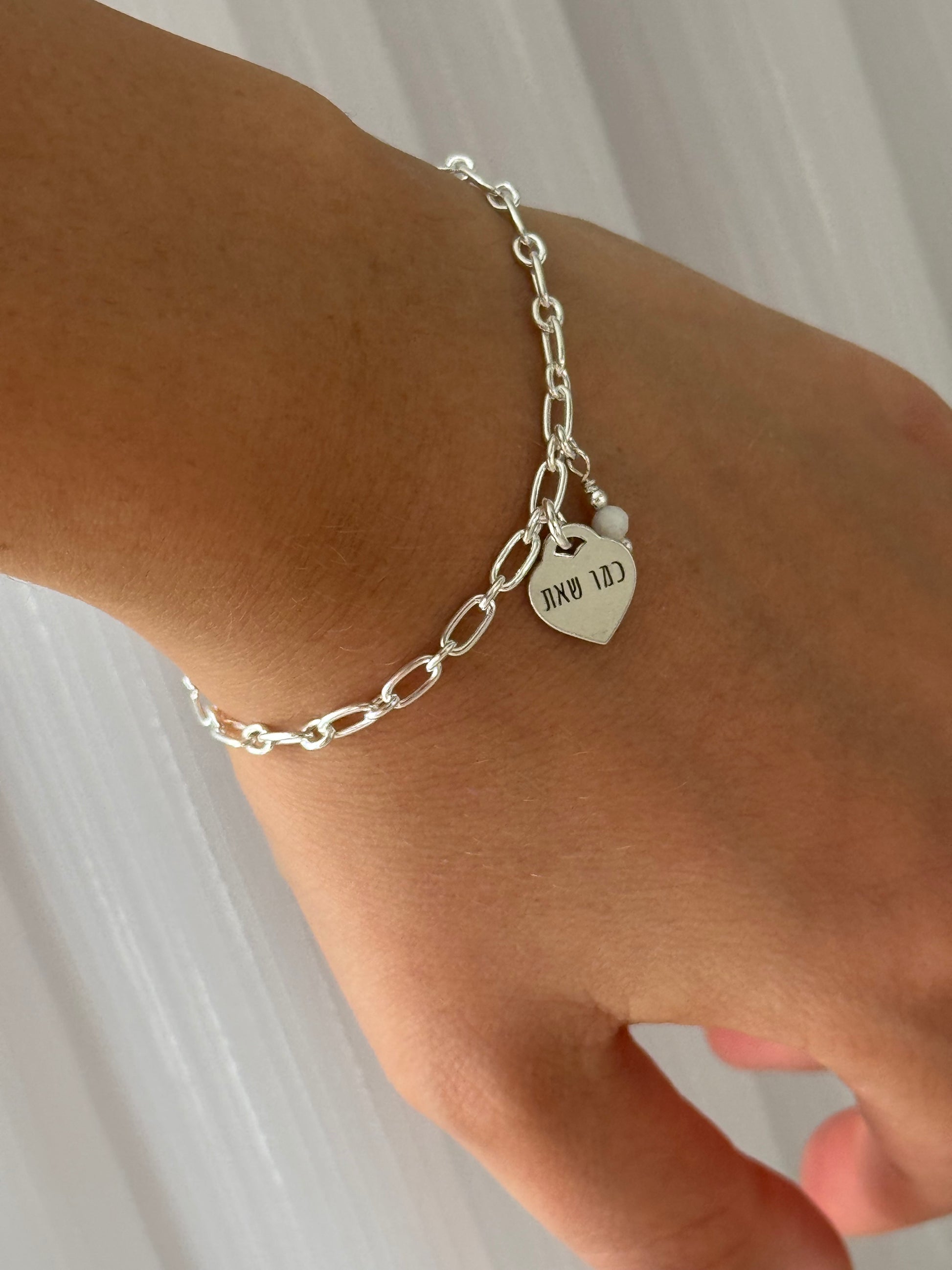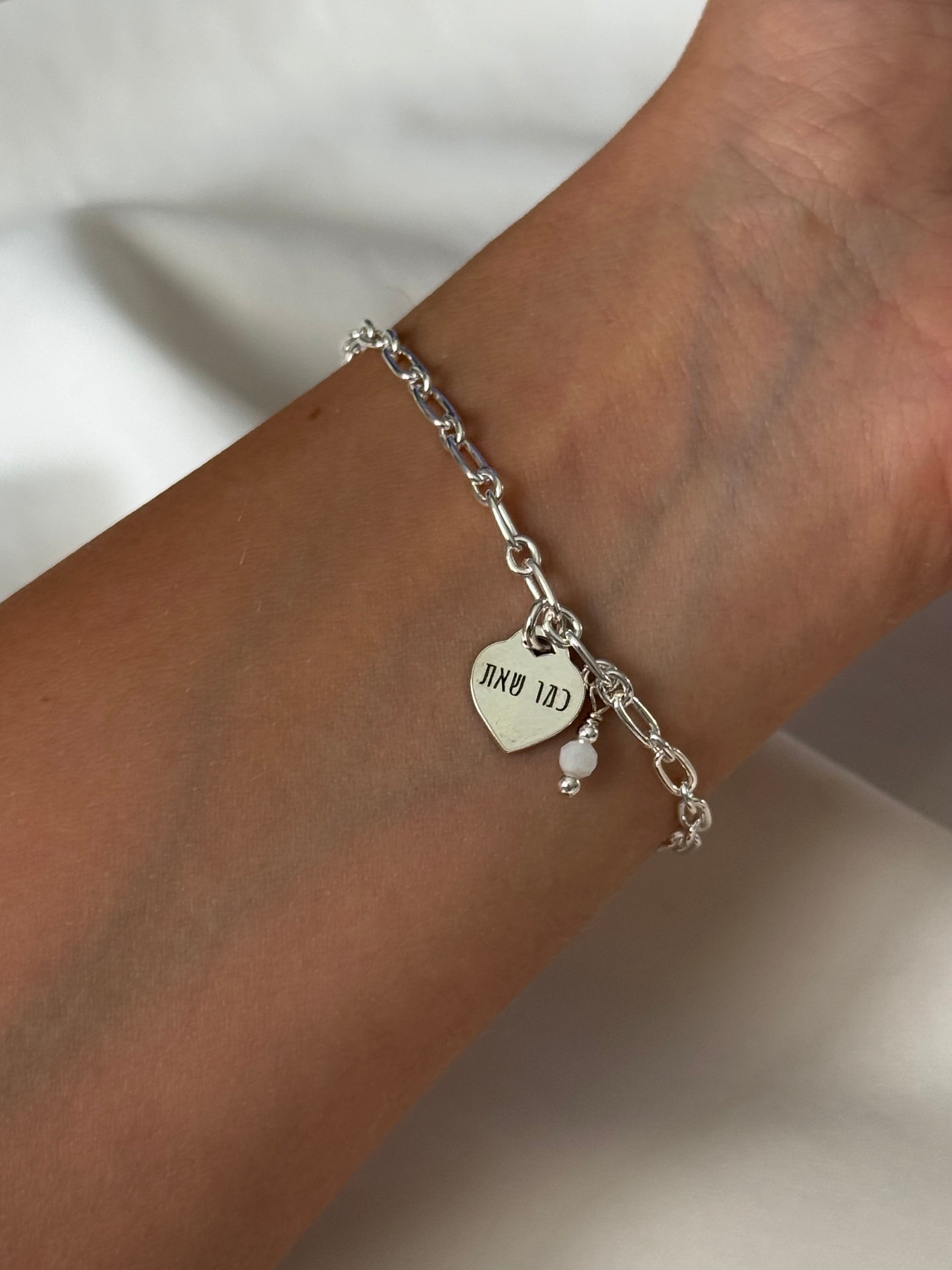 צמיד עשוי כסף 925 בשילוב תליון לב יפיפה הנושא את החריטה המרגשת “כמו שאת”