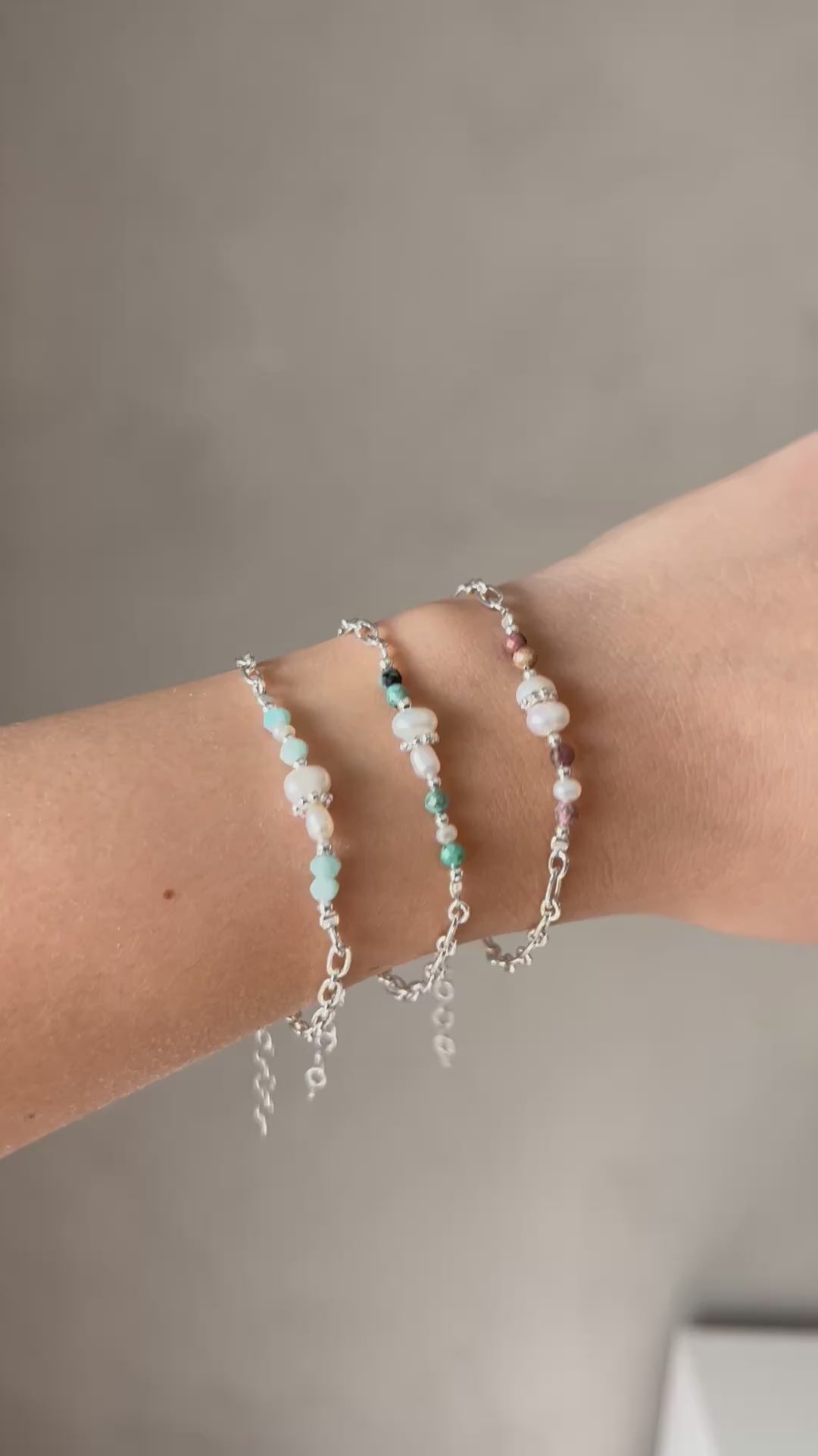 צמיד עדין ויפיפה שלא תוכלי להוריד ממנו את העיניים !בשילוב אבני חן ופנינים עשוי כסף 925 /גולדפילד