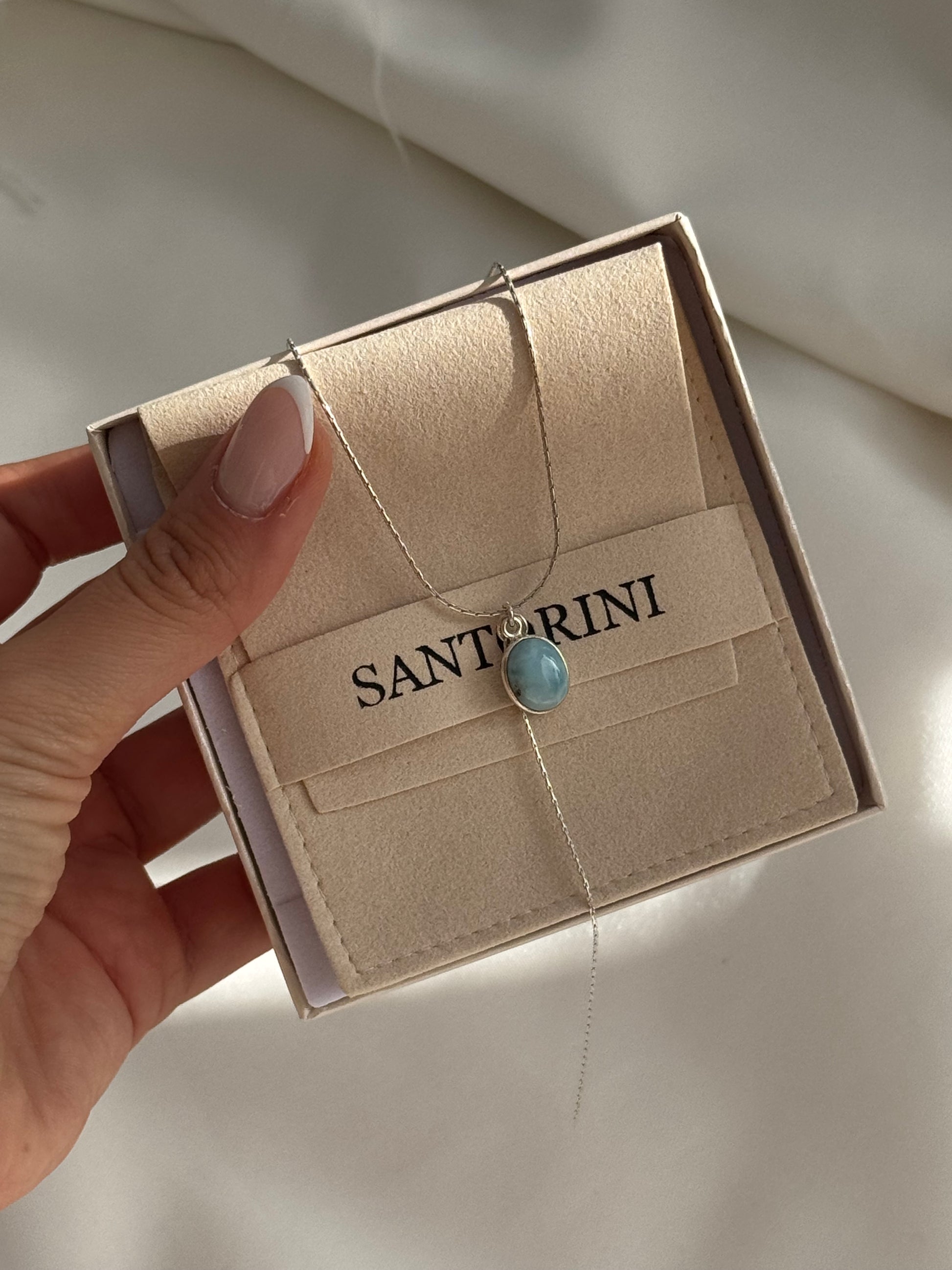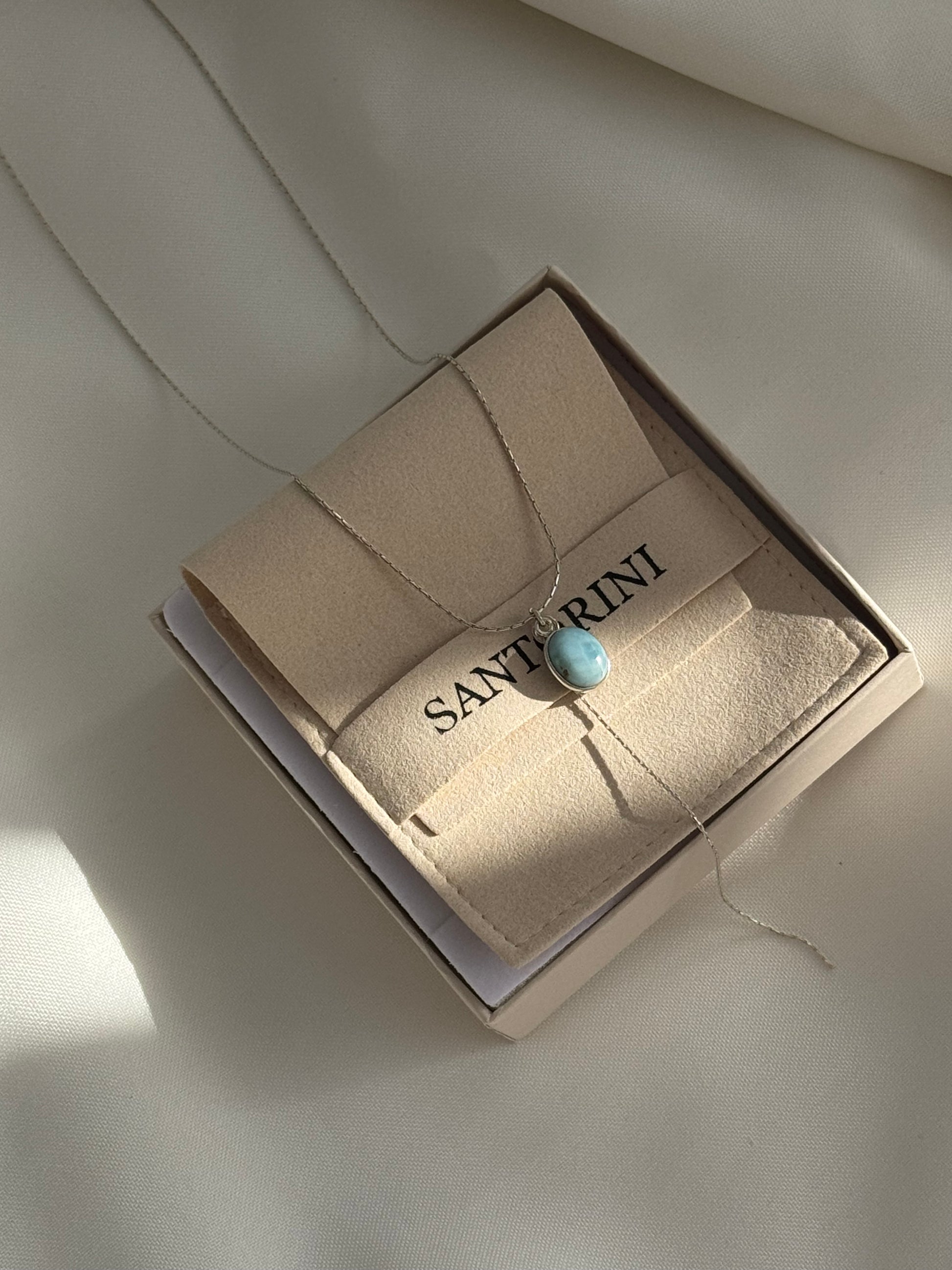 שרשרת כסף 925 בעיצוב נקי ומינימליסטי, עם תליון אבן לרימר טבעית בגוון כחול־ים חלומי.