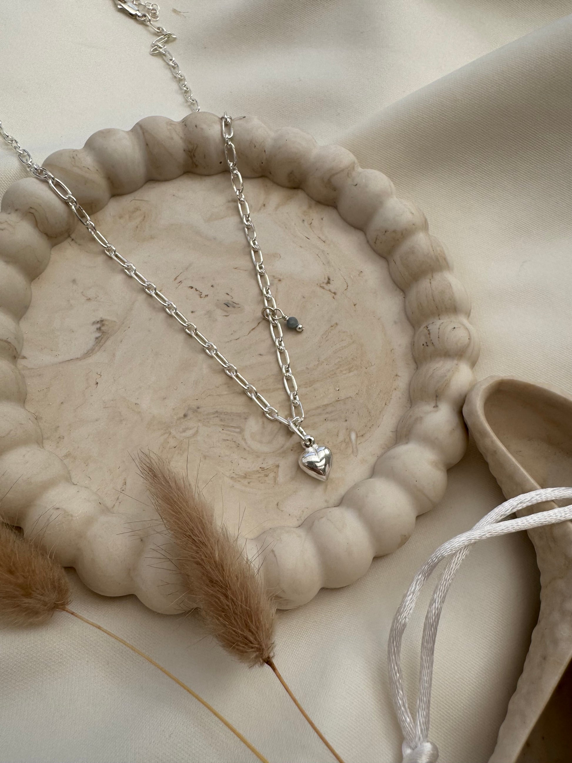 שרשרת מריה גורמט עדינה עשויה כסף 925 תליון לב ואבן אקוומרין שמוסיפה מראה עדין ונקי