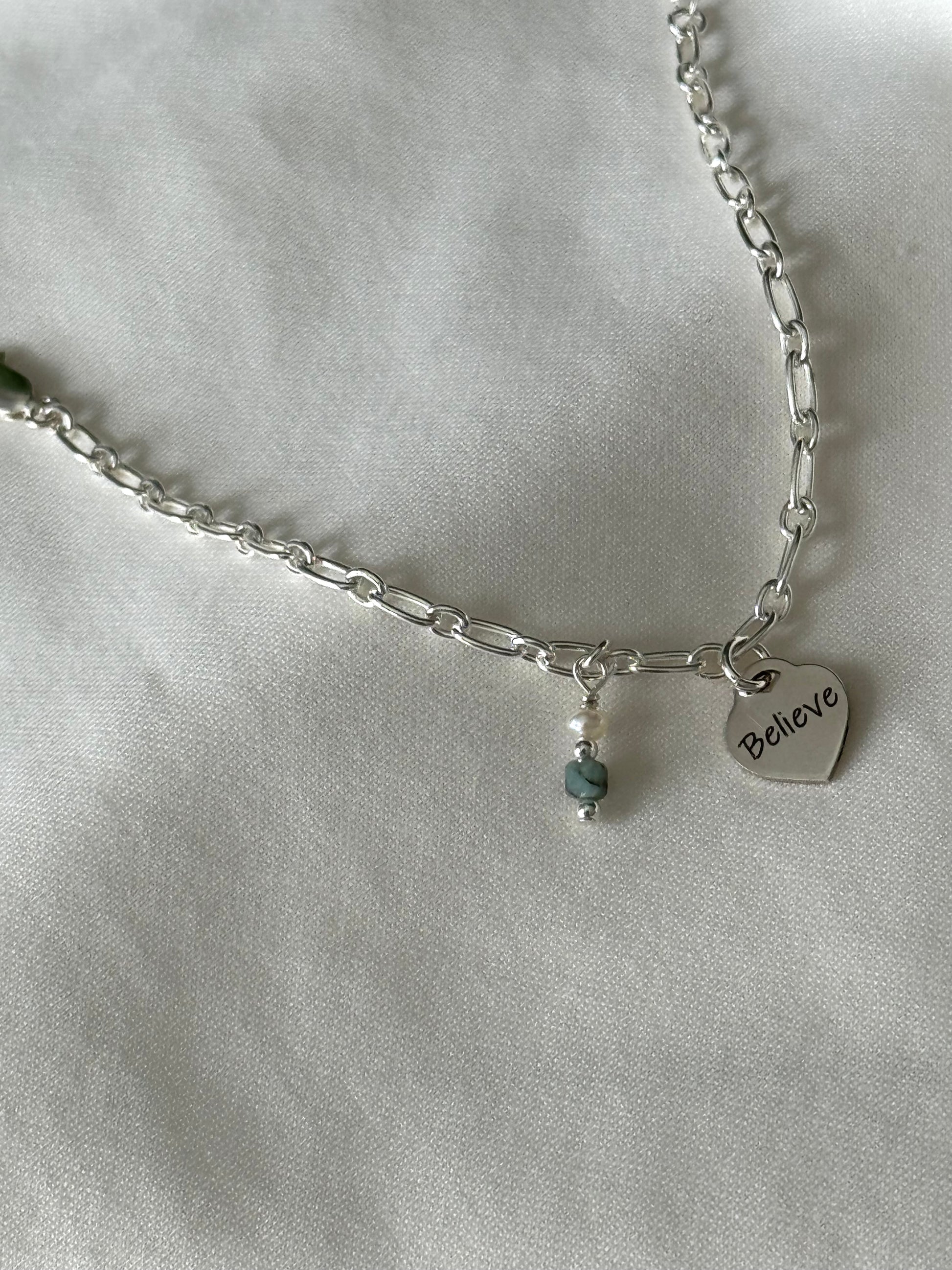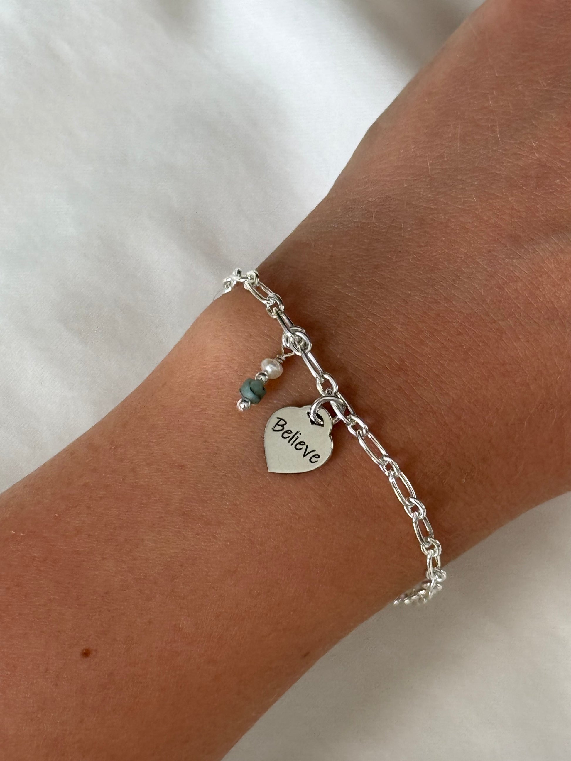 צמיד עשוי כסף 925 בשילוב תליון לב יפיפה הנושא את החריטה המרגשת “Believe”