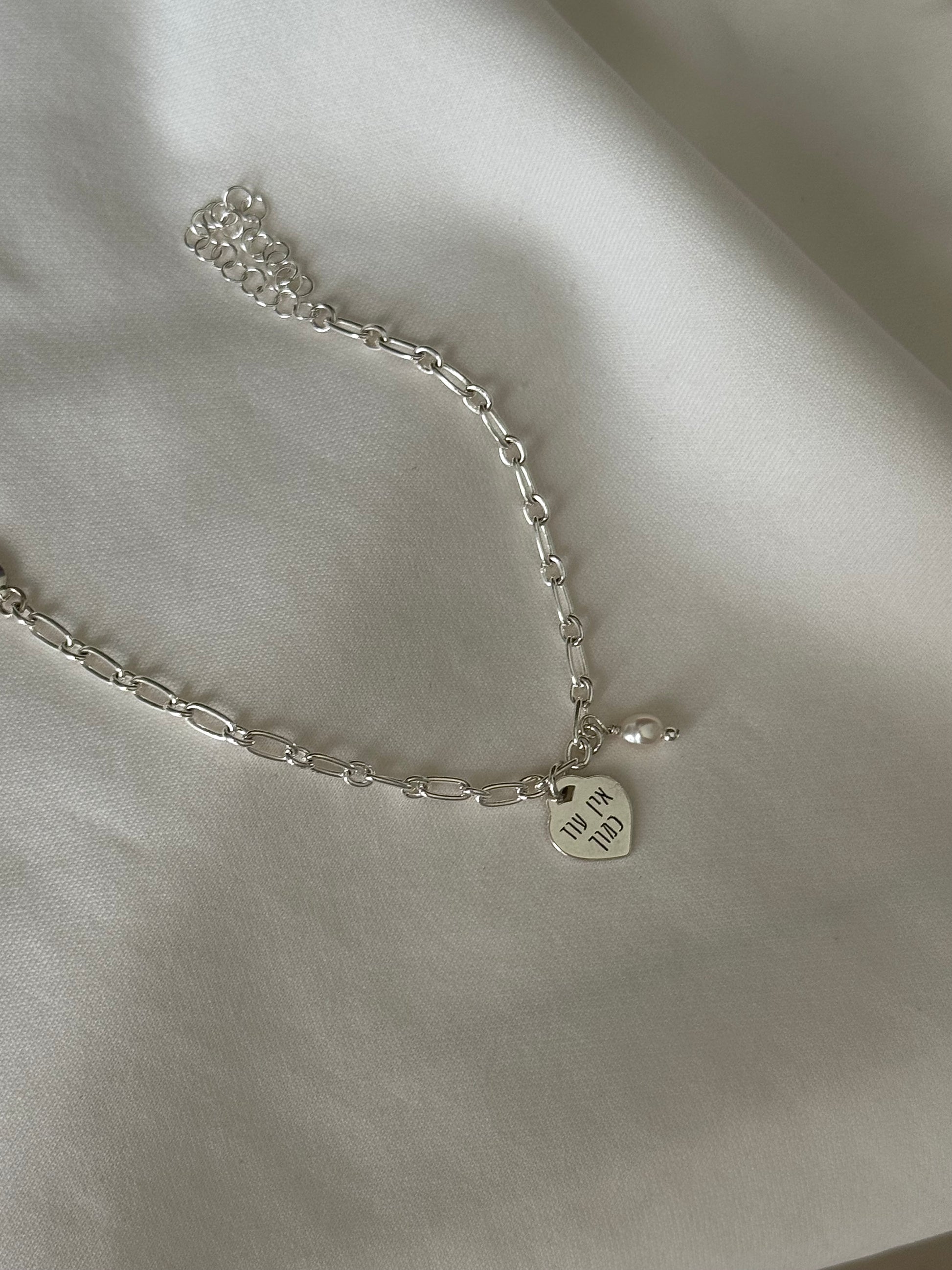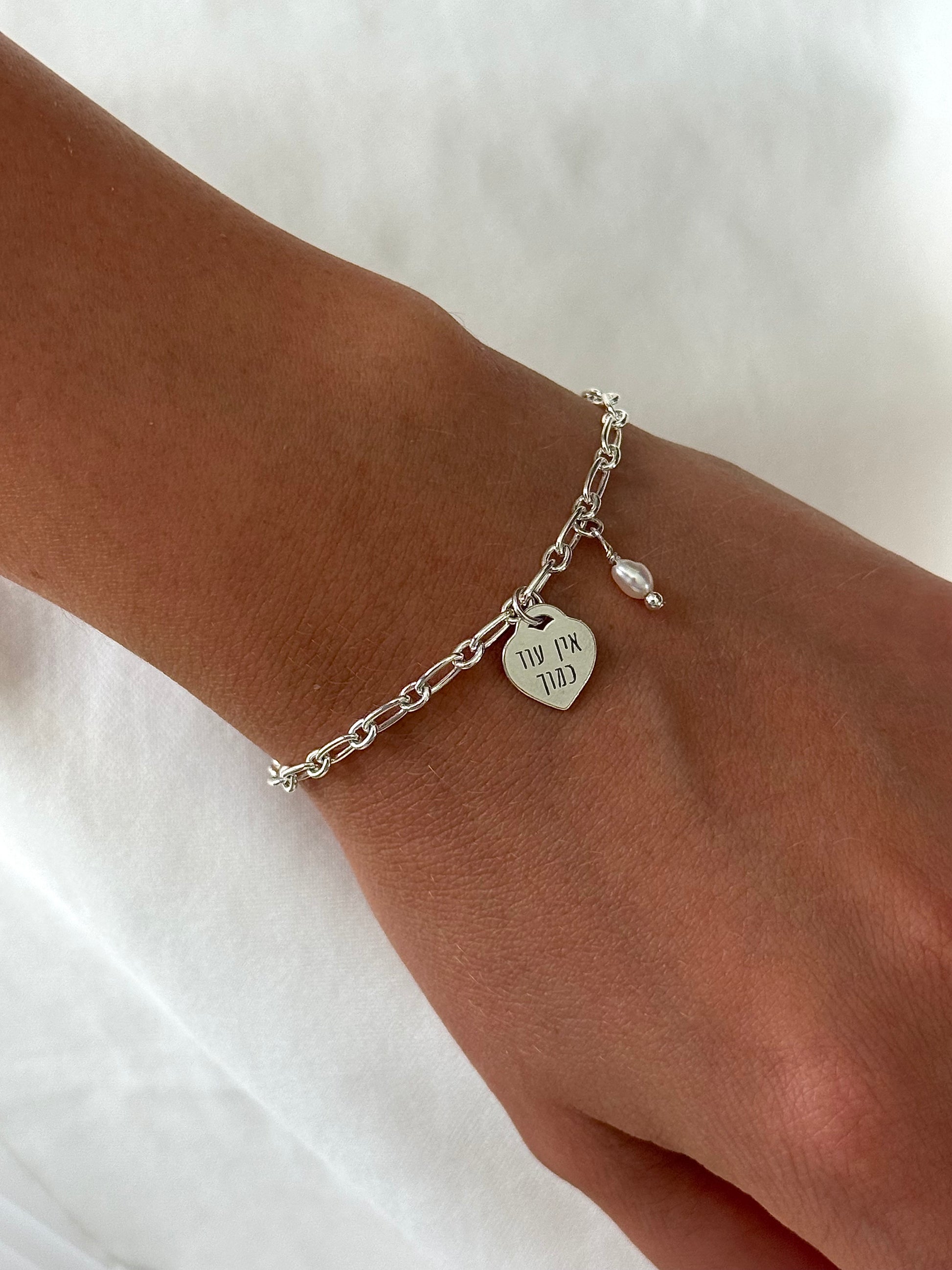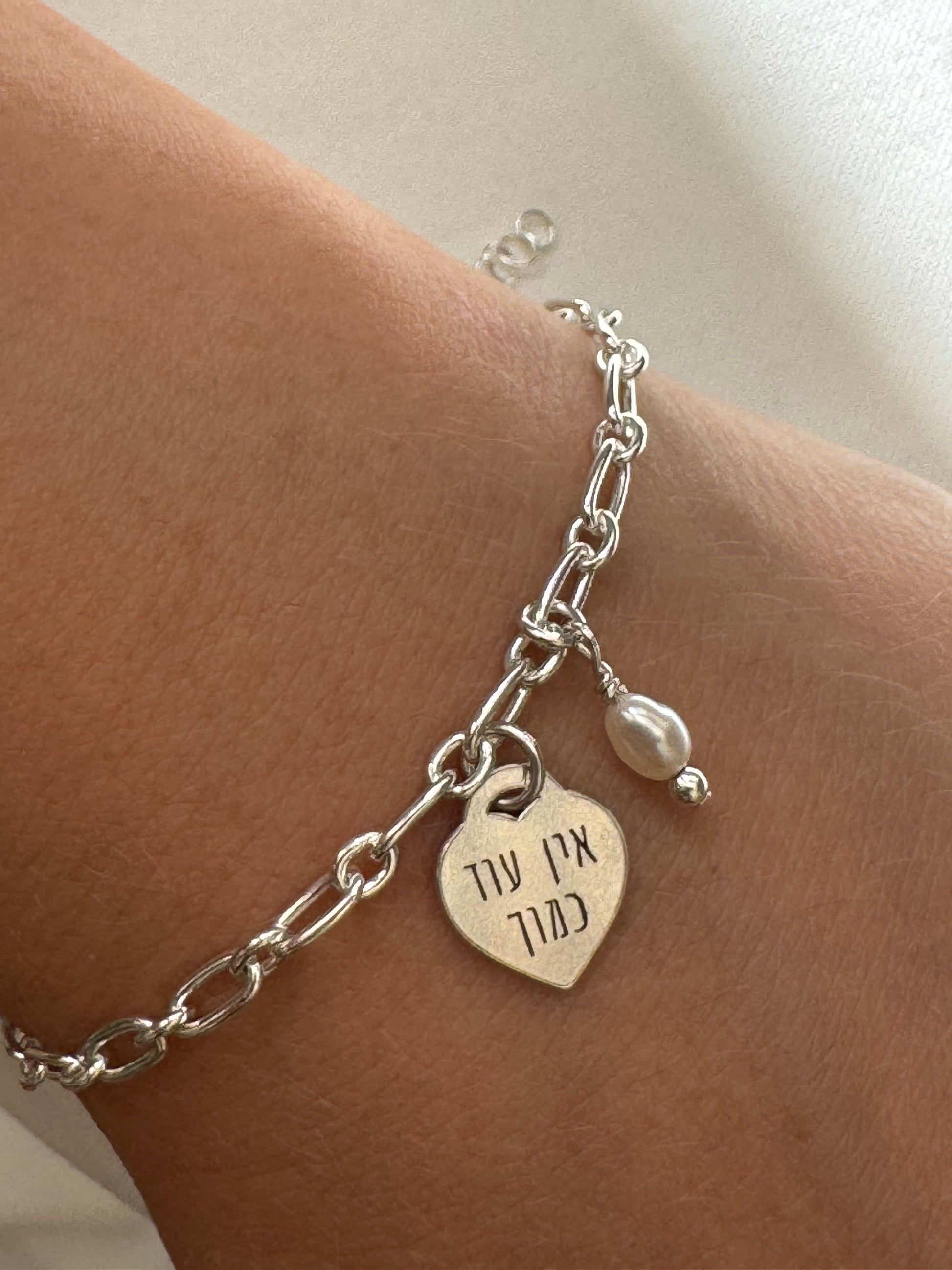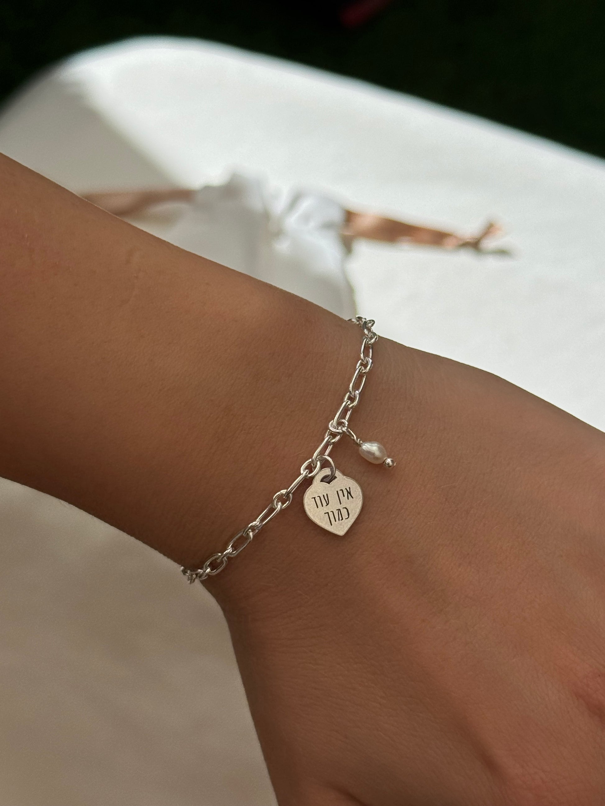 צמיד עשוי כסף 925 בשילוב תליון לב יפיפה הנושא את החריטה המרגשת “אין עוד כמוך”